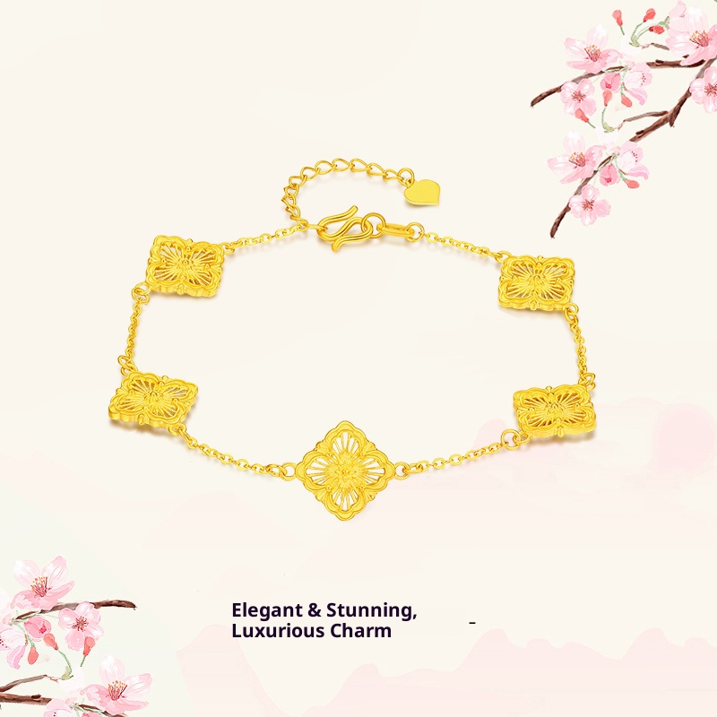New Chinese style five flower four leaf bracelet women's antique jewelry does not fade, light luxury, high-level sense, hollowed out China-Chic style jewelry