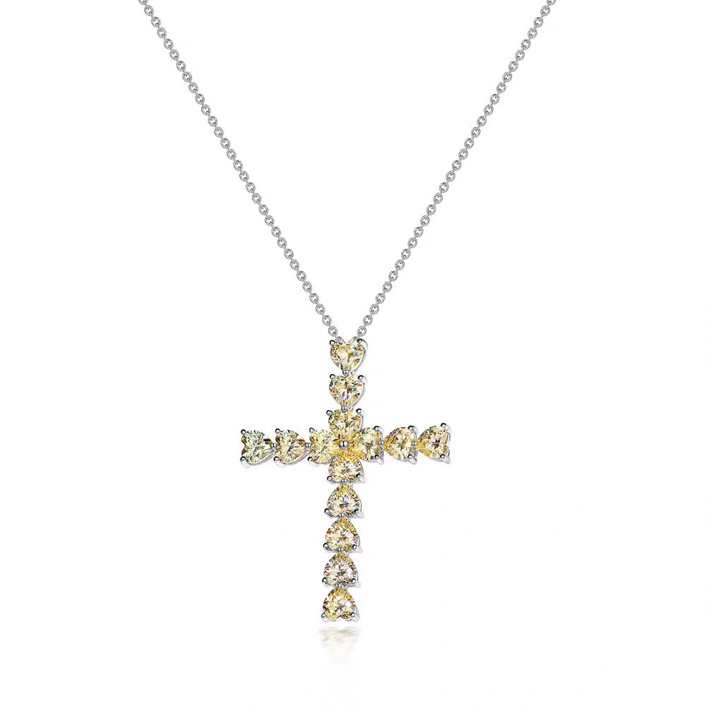 AU750 Platinum Moissanite Love Cross Pink Diamond Yellow Diamond Necklace Light Luxury Super Flash Fashion Style Pure Silver 编辑译文 段落对照 笔记