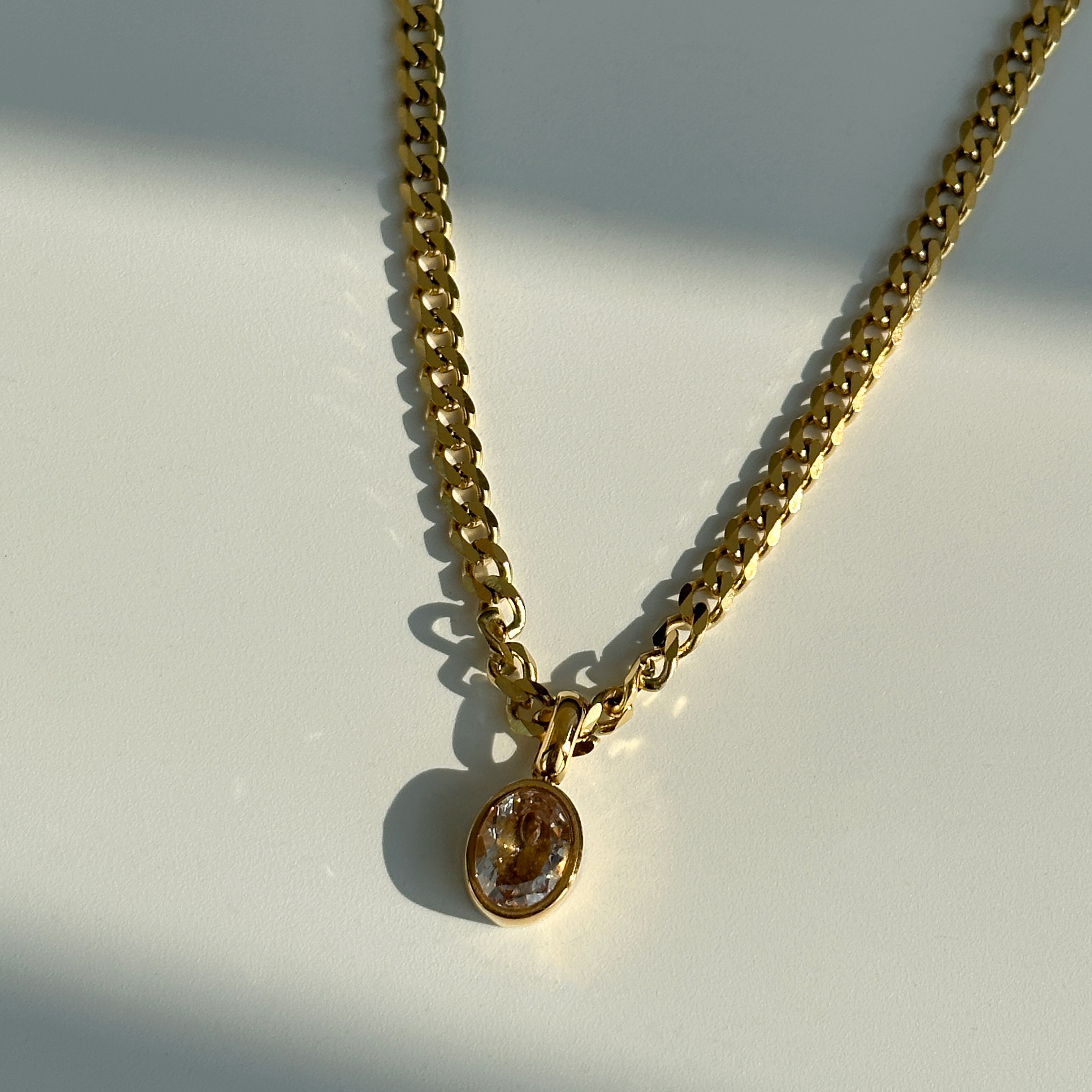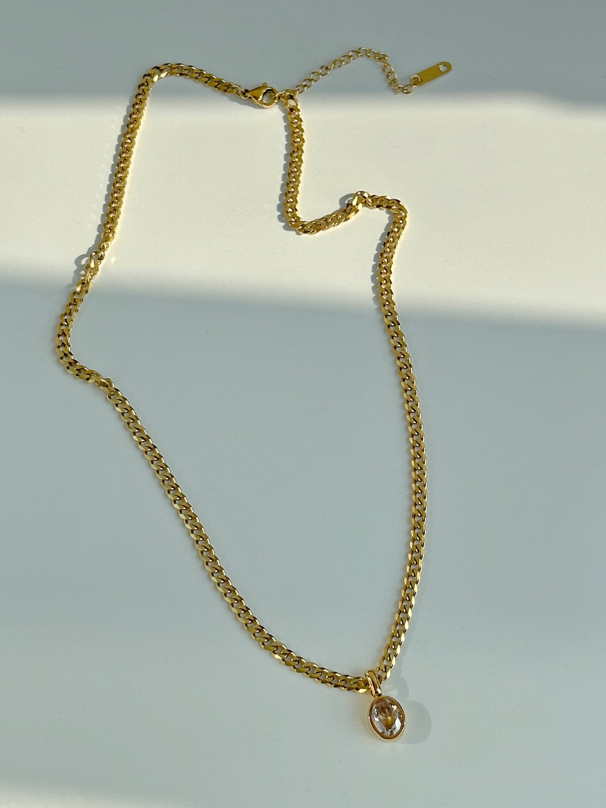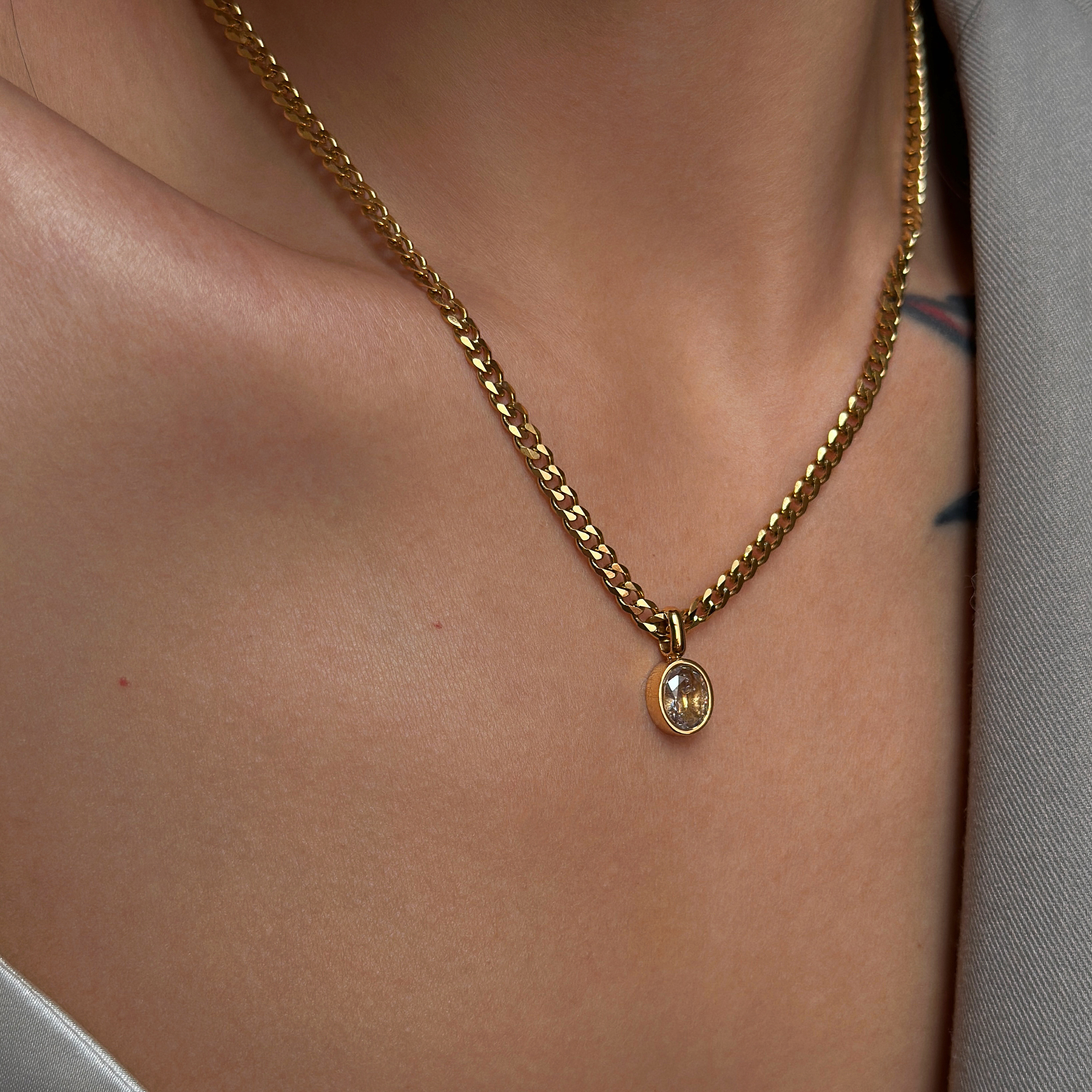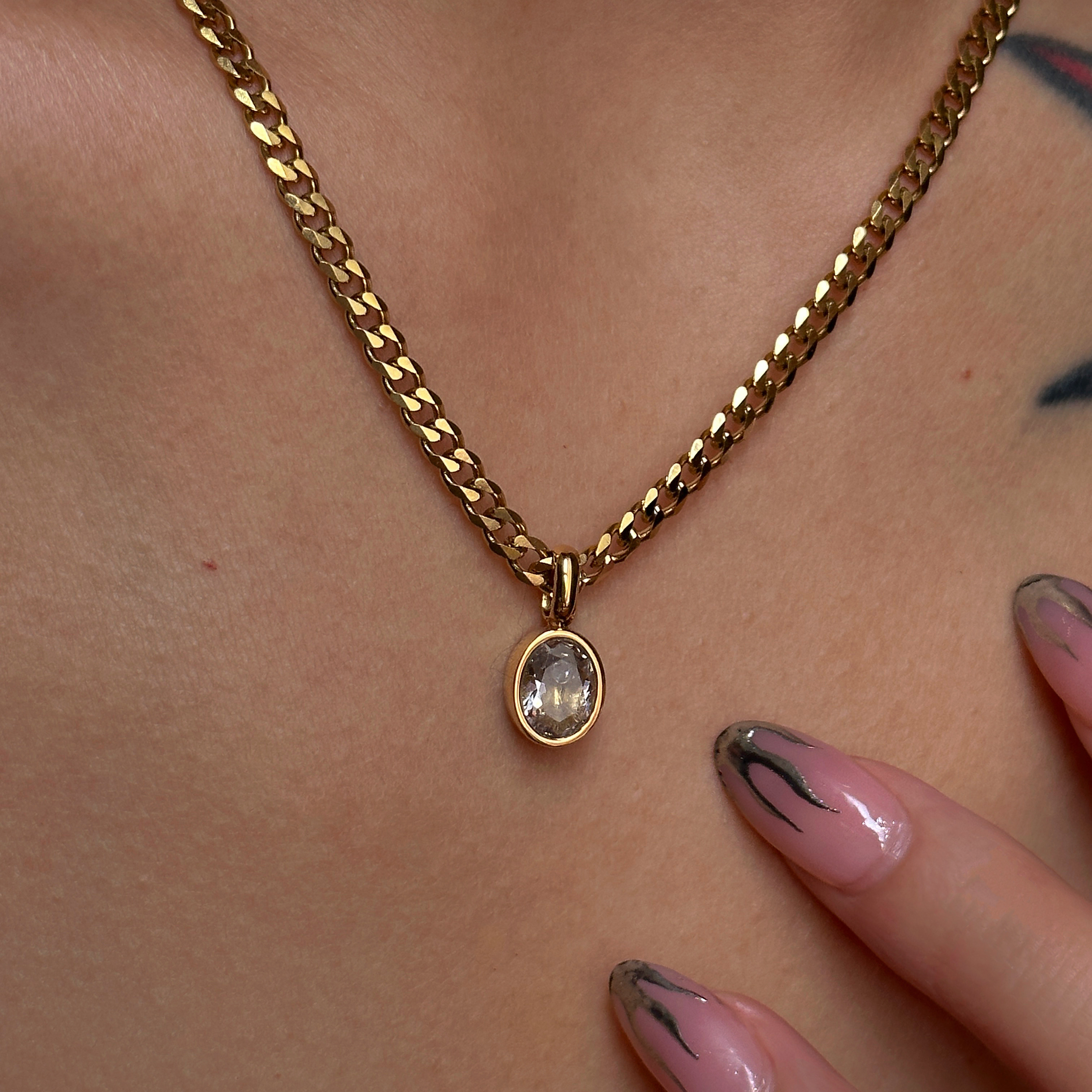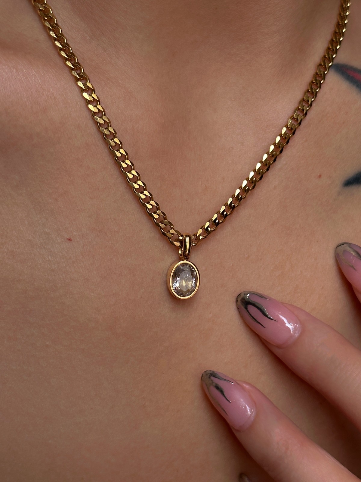 DASEIN ACC European and American niche design temperament retro personality oval zircon titanium steel necklace