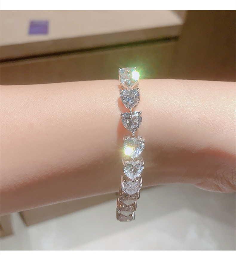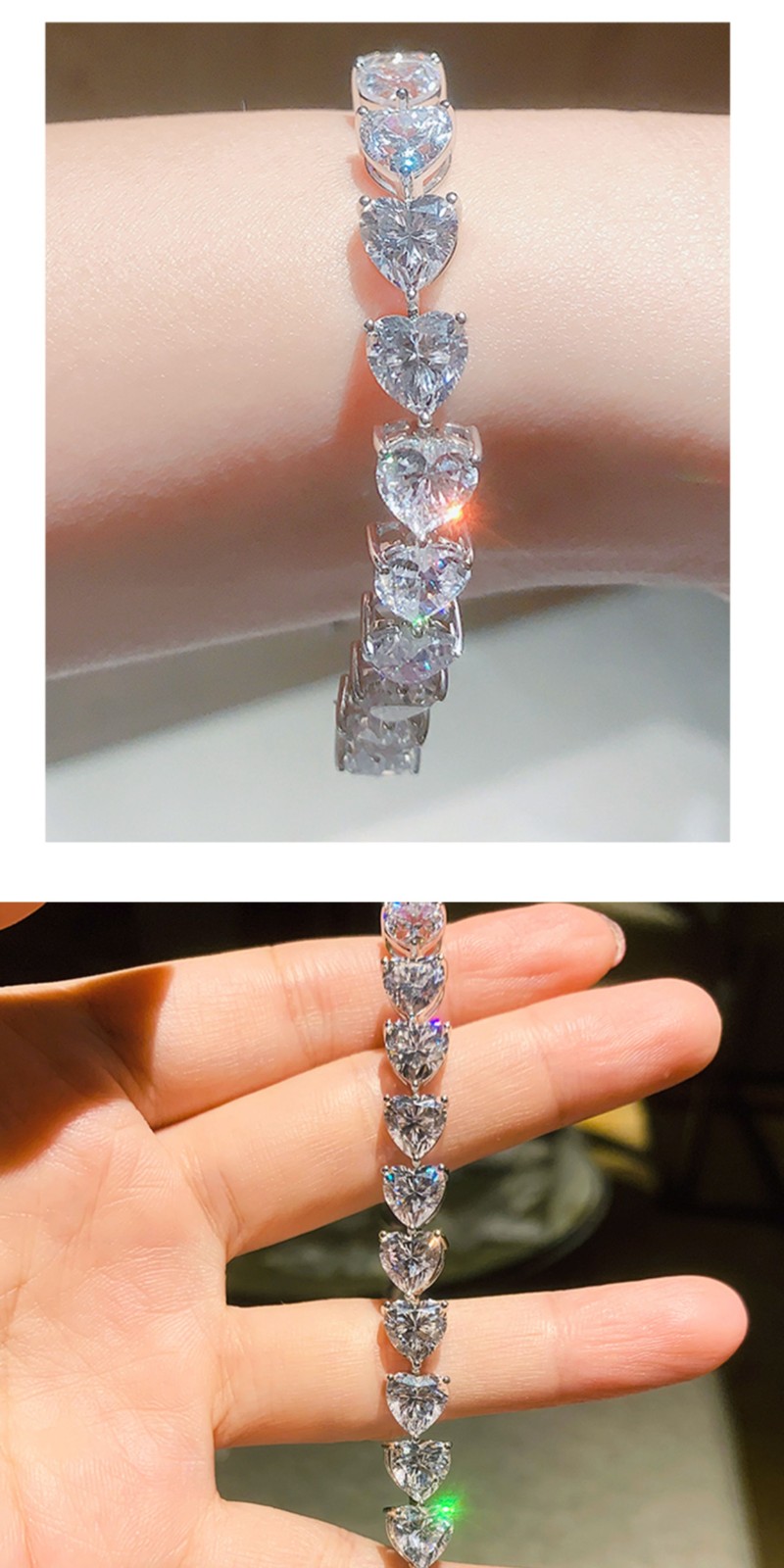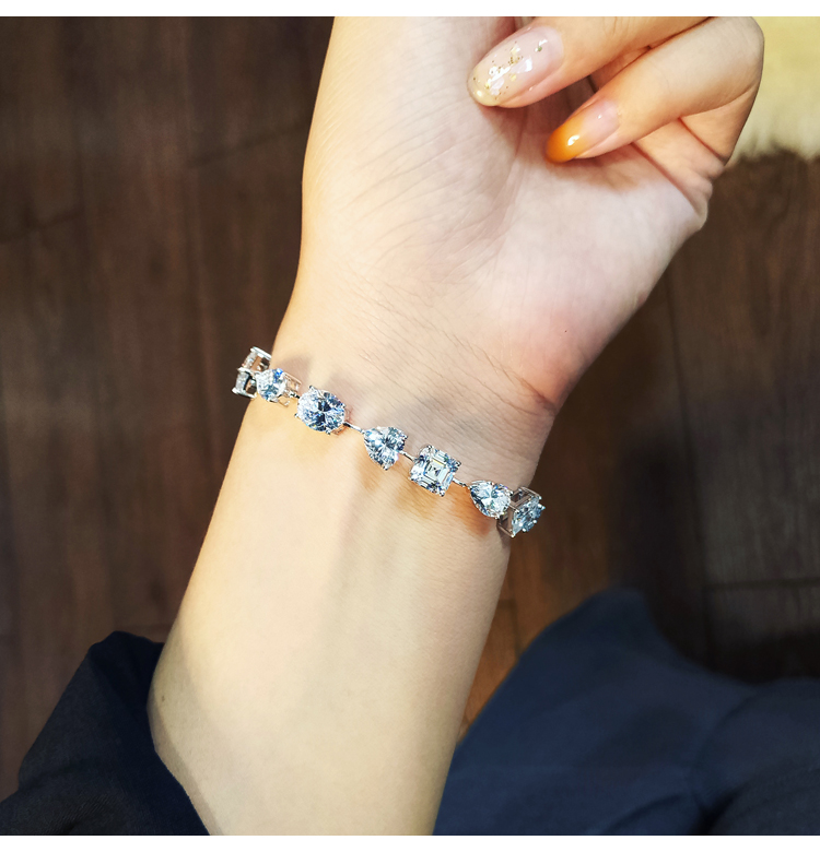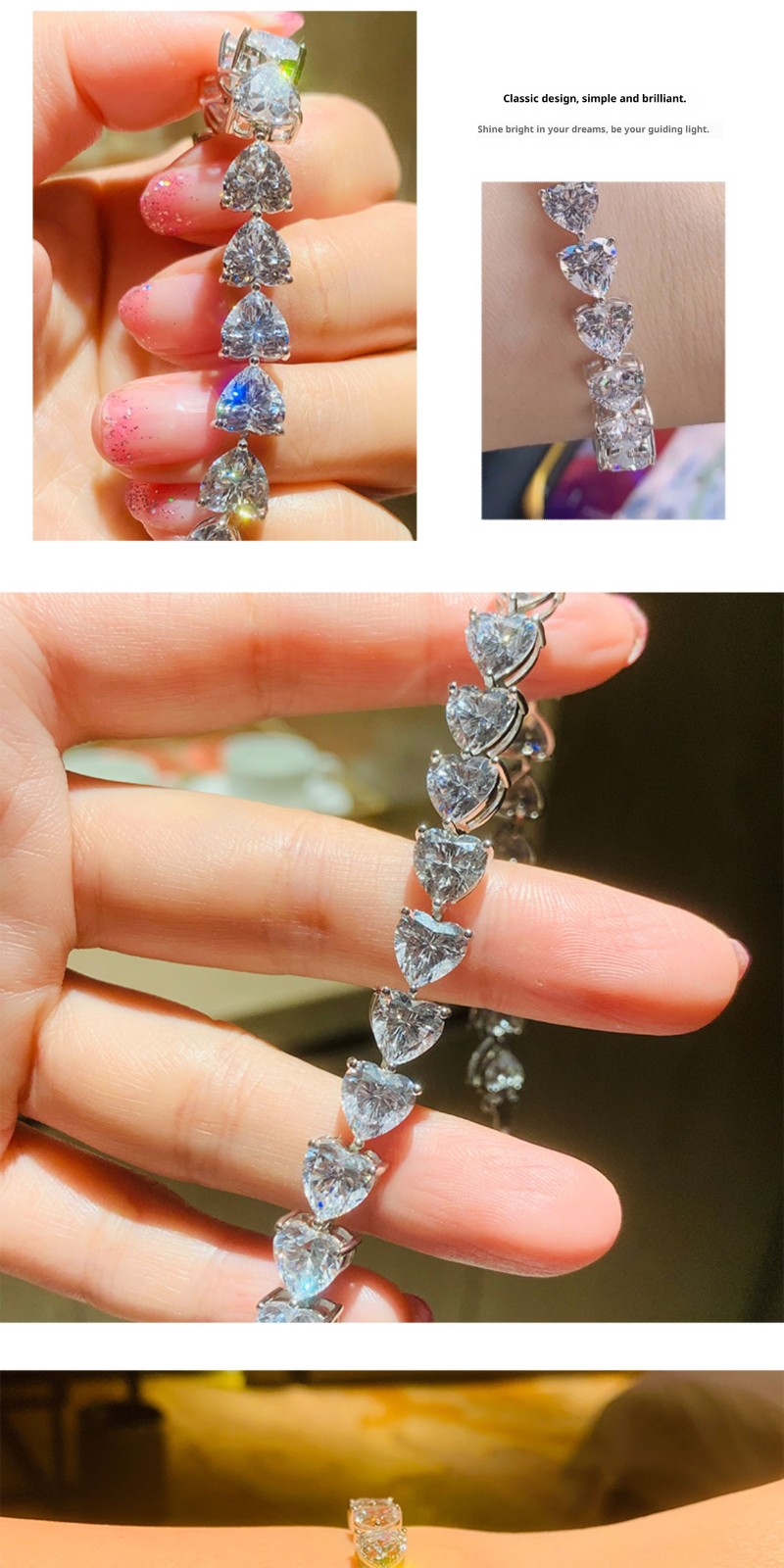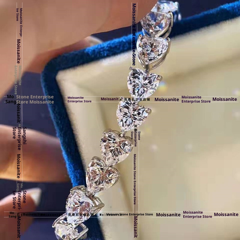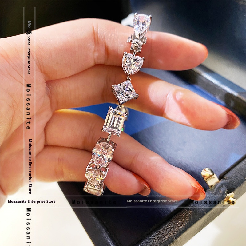 PT950 platinum moissanite shaped heart-shaped pure silver temperament luxurious full diamond irregular bracelet