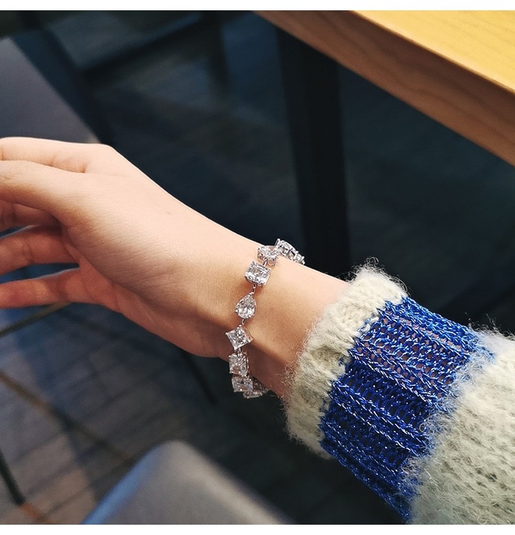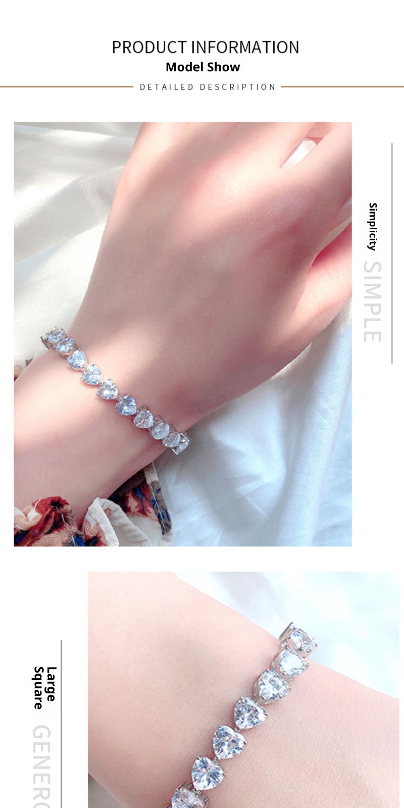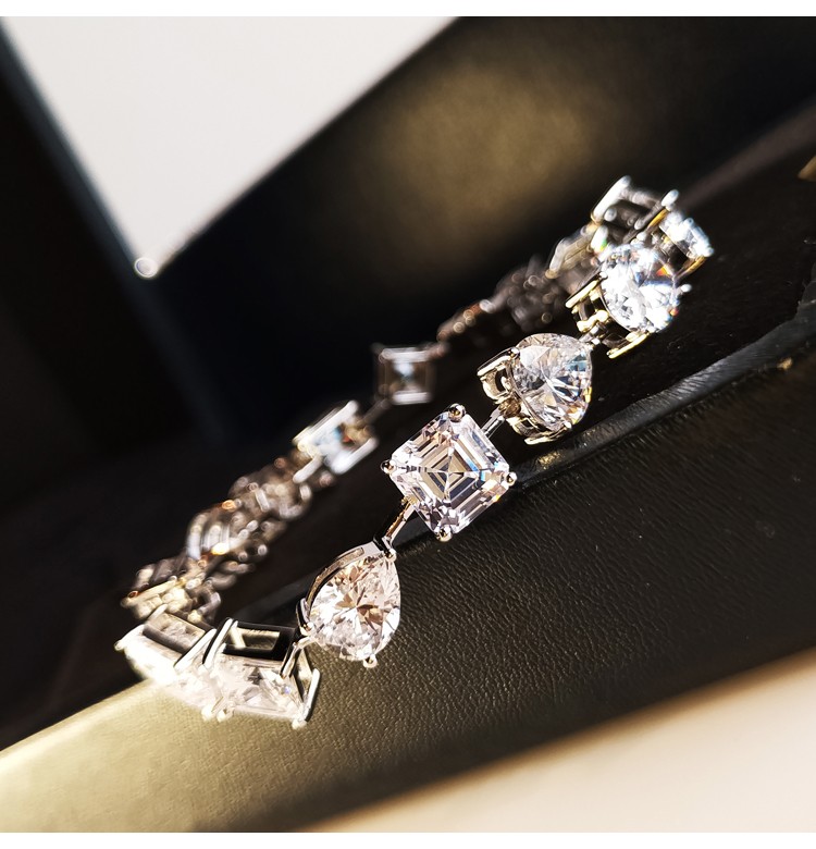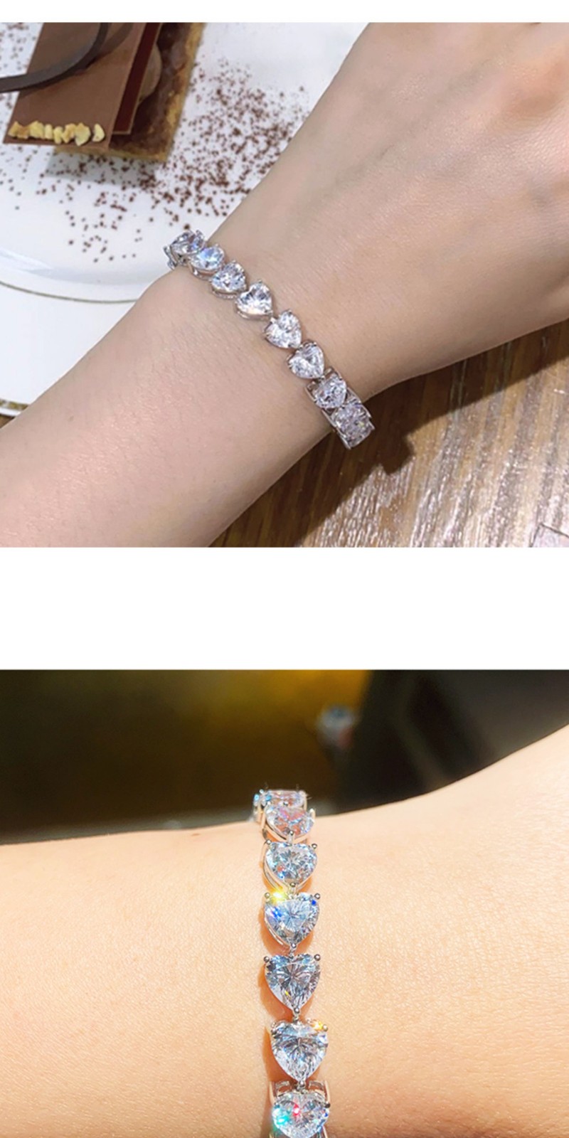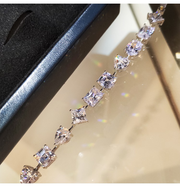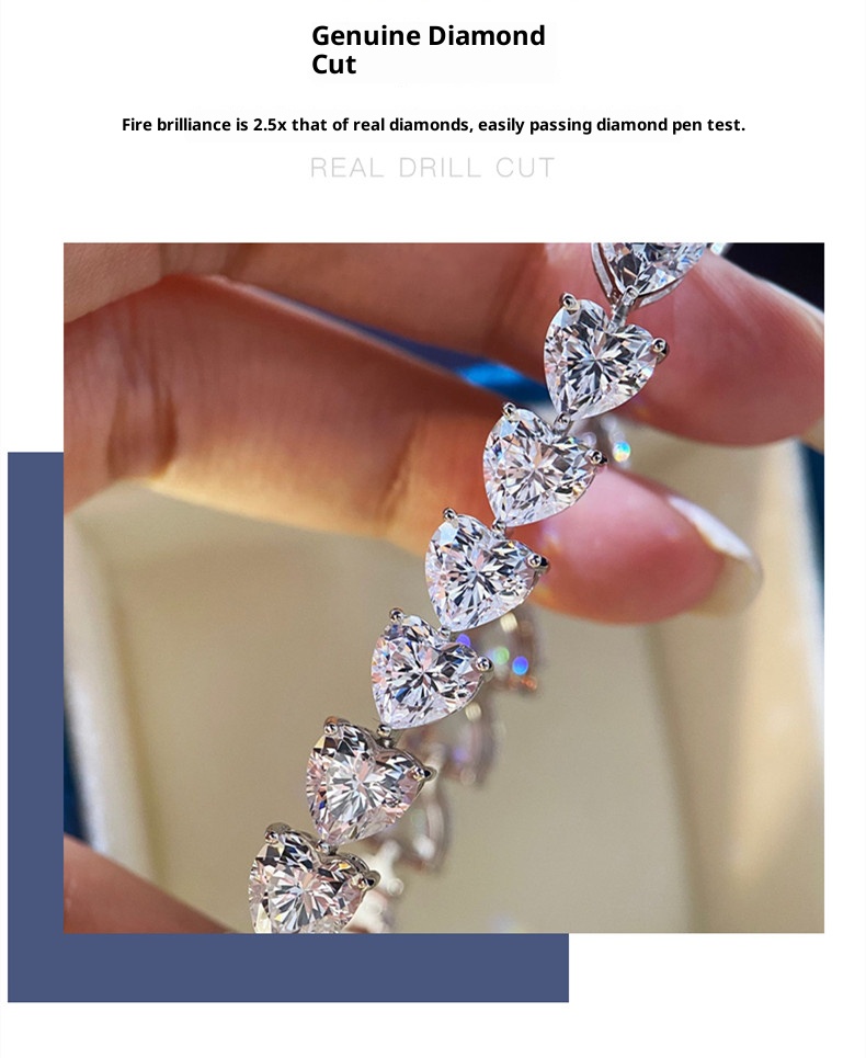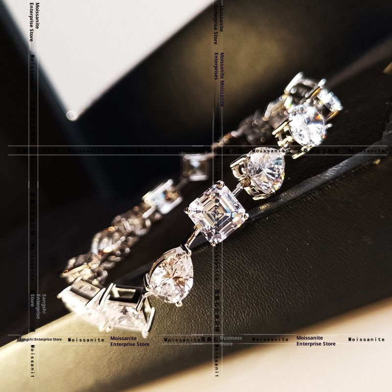 PT950 platinum moissanite shaped heart-shaped pure silver temperament luxurious full diamond irregular bracelet